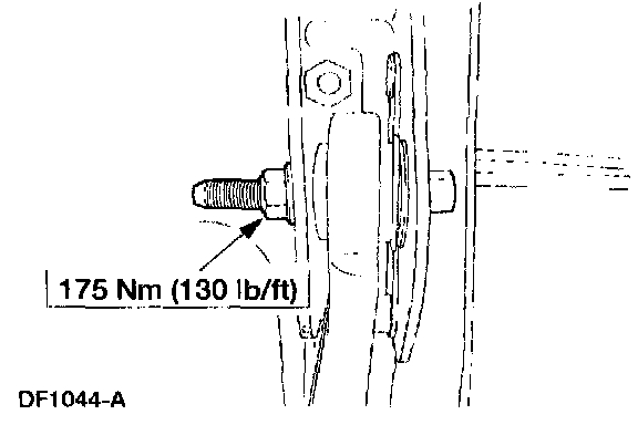 16. Lower the vehicle and with the vehicle weight on the suspension, tighten the axle pivot bolt and nut to specification.