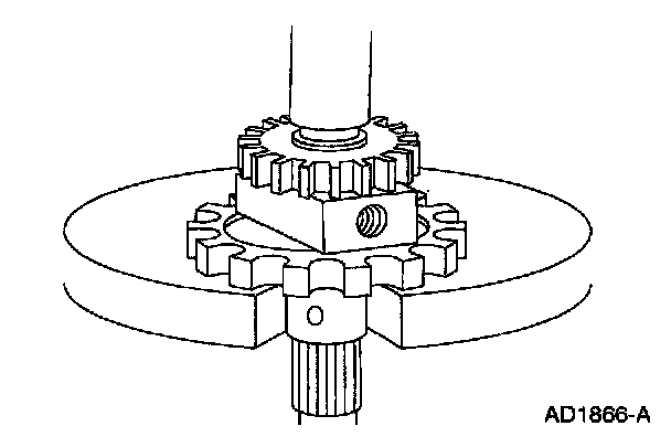 3. Check the splines on the output shaft for wear. Replace the output shaft if the splines are excessively worn. Inspect all the bushings for wear. Replace if worn or damaged.