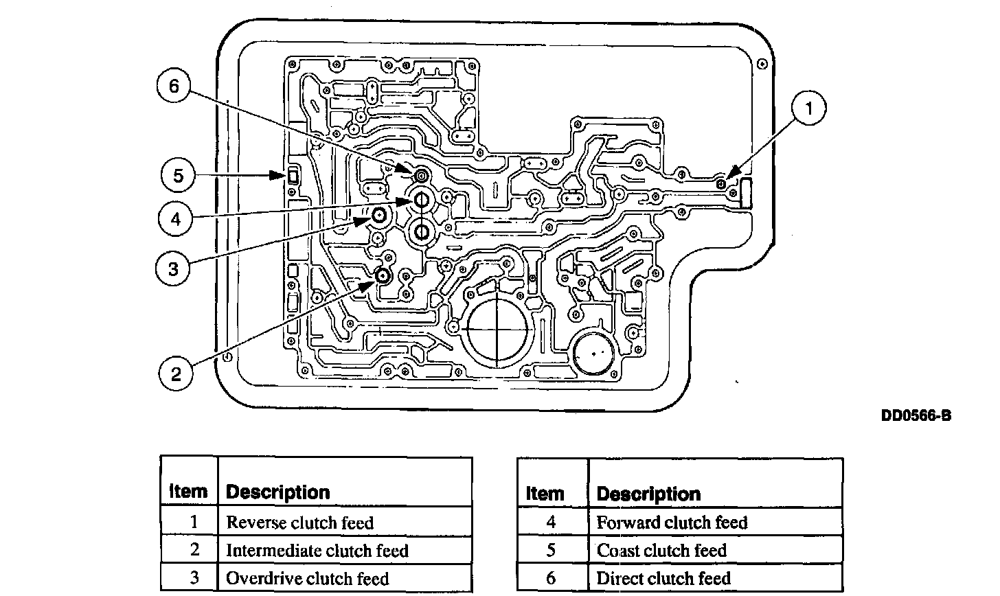 3. The inoperative clutches can be located by applying air pressure into the appropriate clutch port. See the Air Pressure Test Port Locations illustration for clutch port locations.