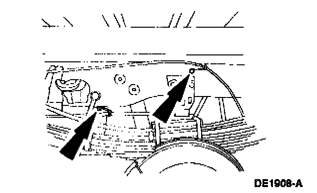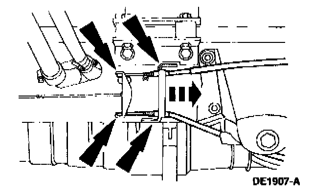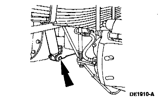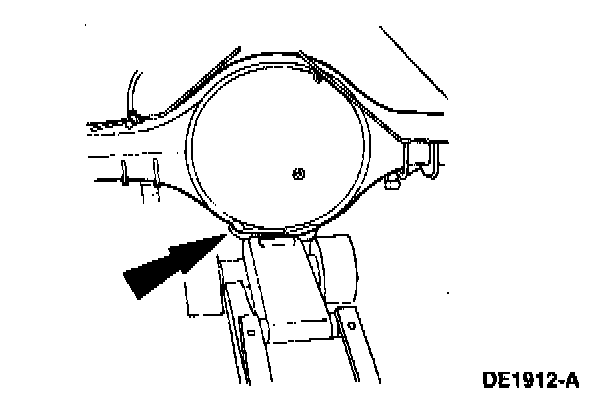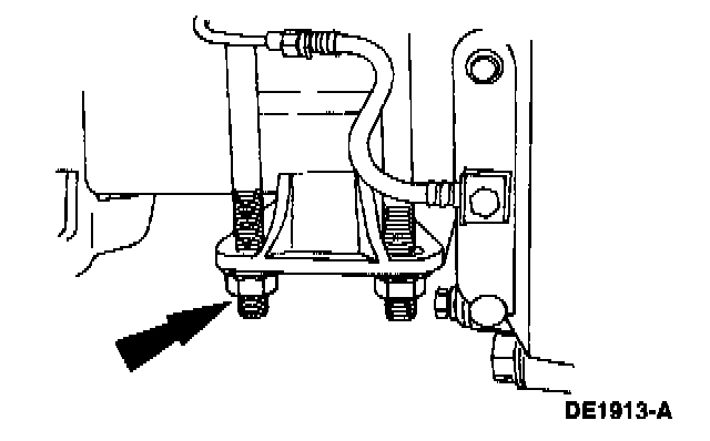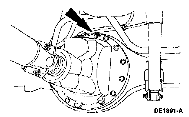 12. Disconnect the hydraulic brake hose and axle vent hose at the crossmember. Plug the brake hose and brake line, and position the hoses aside.