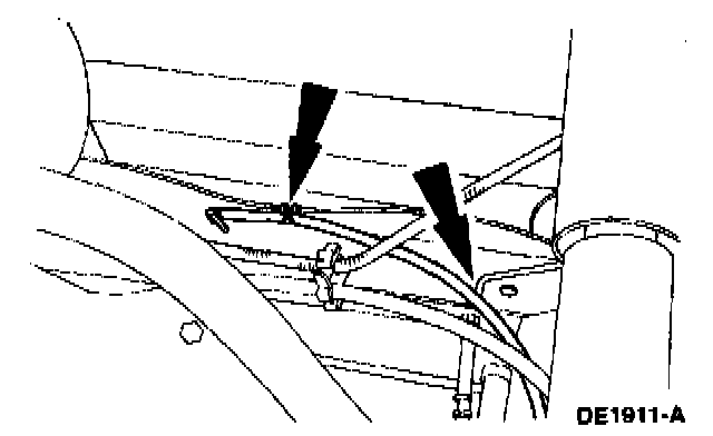 6. Release the parking brake cable tension, and disconnect the cables at the equalizer and the anchor plate.