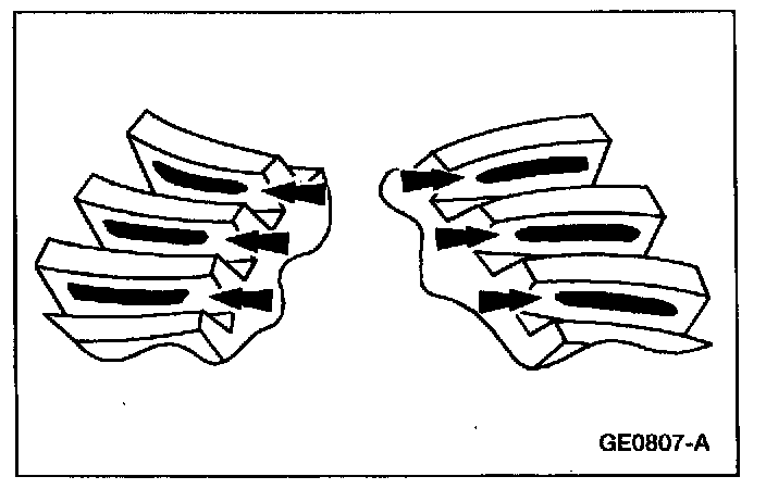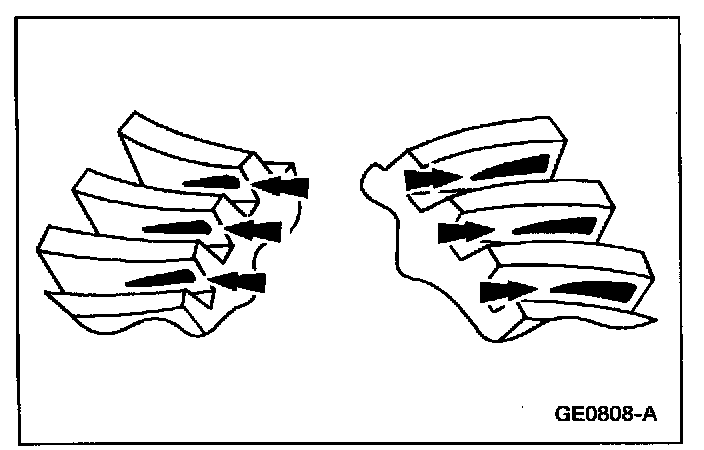 - Drive pattern on the drive side differential ring gear well centered on the tooth.