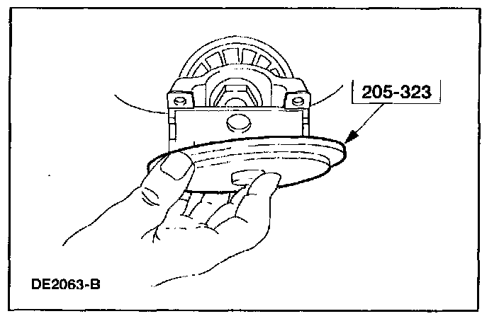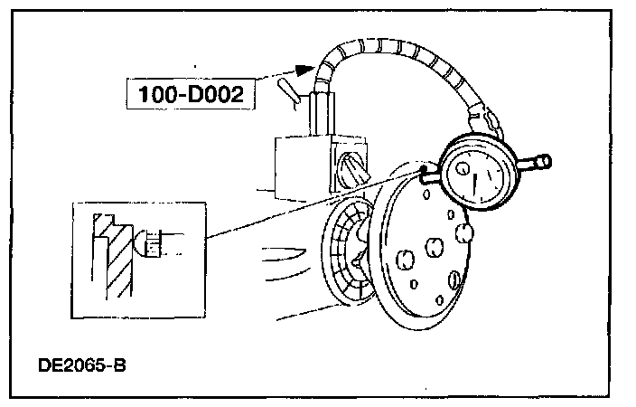 Position the special tool as shown. Adjust and lightly tighten the mounting bolts and nuts so the gauge runout is 0.254 mm (0.010 inch) or less.