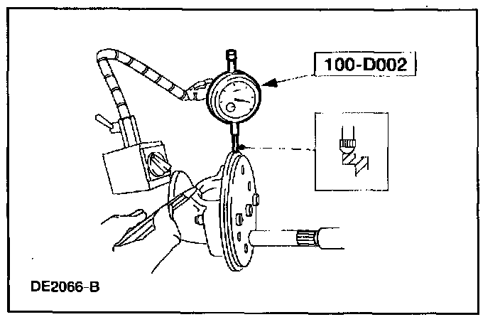 If the flange runout exceeds 0.25 mm (0.010 inch), remove the pinion flange, reindex the flange one-half turn on the pinion, and reinstall it.