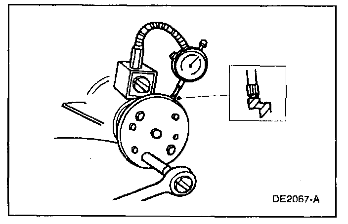 9. Check the runout again. If necessary, reindex the flange until an acceptable runout is obtained. If the flange runout is still more than 0.25 mm (0.010 inch), install a new pinion flange.