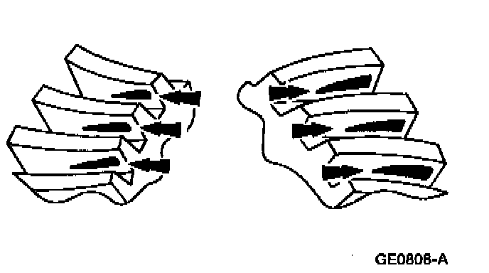 In general, desirable ring gear tooth patterns must have the following characteristics:^ Drive pattern on the drive side differential ring gear well centered on the tooth.