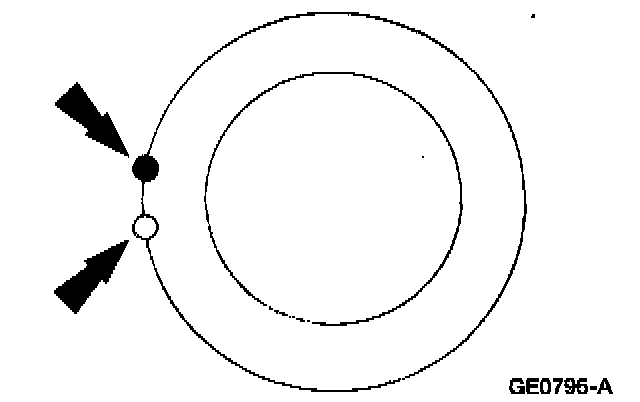 6. Excessive driveshaft runout may originate in the driveshaft itself or in the pinion flange. To determine which, compare the two high points marked in Steps 4 and 5. If the marks are close together, within about 25 mm (1 inch), install a new driveshaft and road test the vehicle.