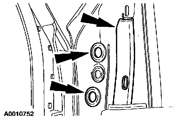 5. Remove the nuts and remove the outside rear view mirror.