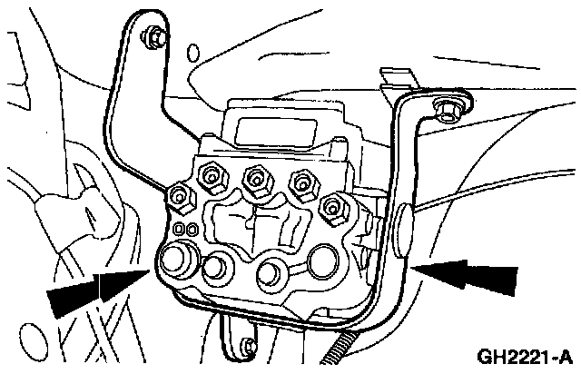 RemovalCAUTION: Be careful not to damage the finger-like valve cartridges while removing and installing the anti-lock brake control module.