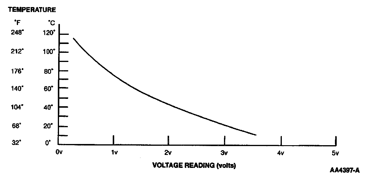 Voltage values were calculated for VREF 5.0 volts. These values can vary 15 percent due to sensor and VREF variations.