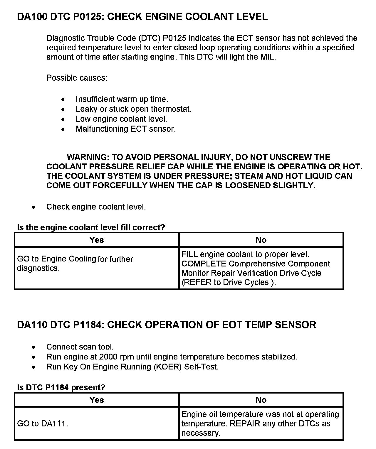 Tests DA: Intake Air Temp. (IAT)/Engine Coolant Temp. (ECT) Sensors