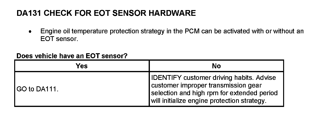 - Engine Oil Temperature (EOT) sensor