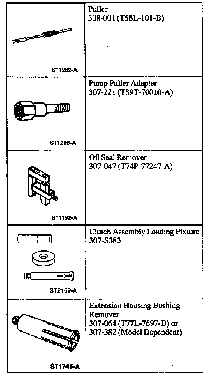 36. Using the (A) Oil Seal Remover and the (B) Impact Slide Hammer, remove the (C) extension housing seal.