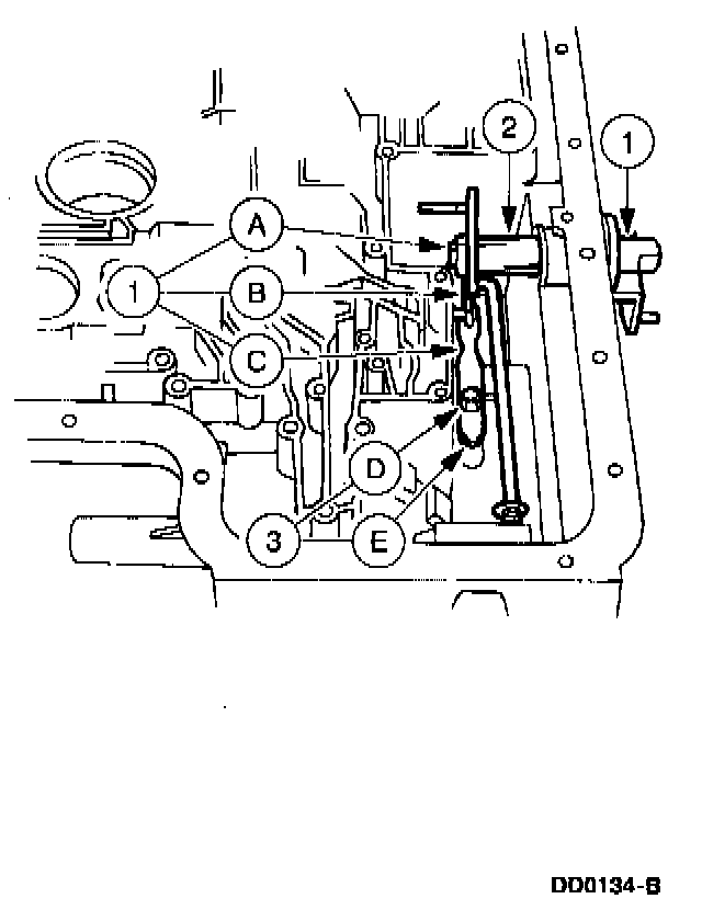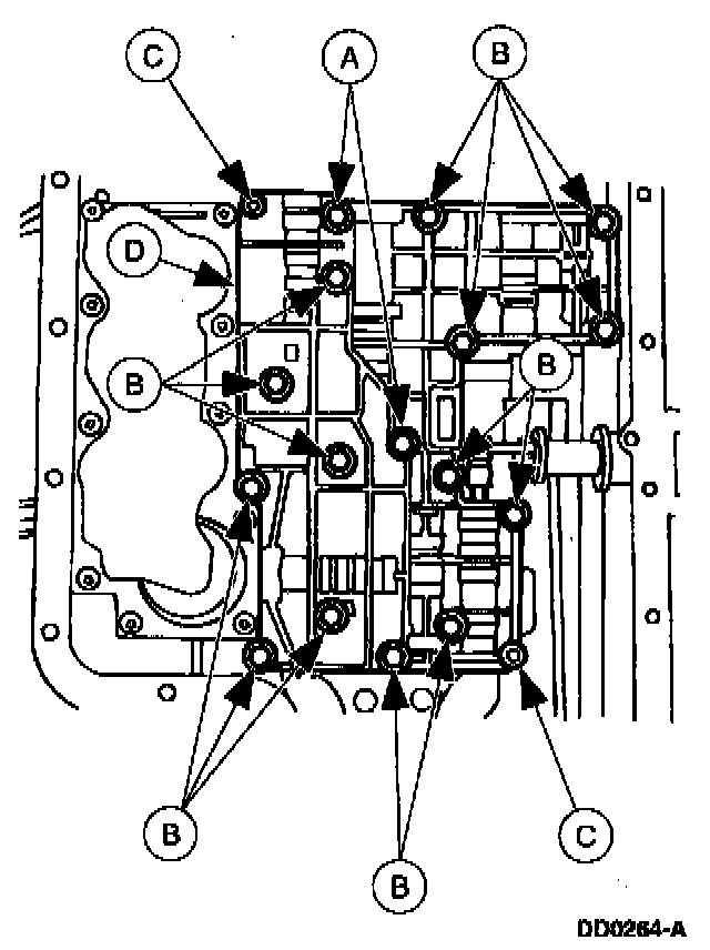 Remove the (B) bolts, the: (C) nuts, and the (D) main control valve body.