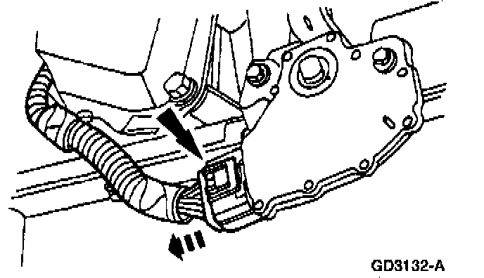 8. Position a suitable drain pan and disconnect the transmission fluid cooler tubes at the cooler bypass valve.