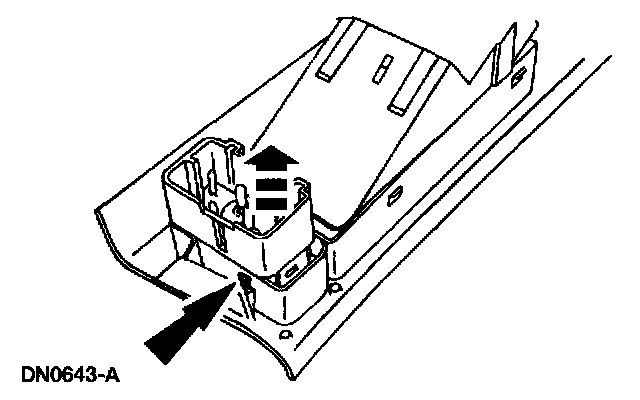 4. Release the front and back retaining clips on the door lock control switch and remove the switch.