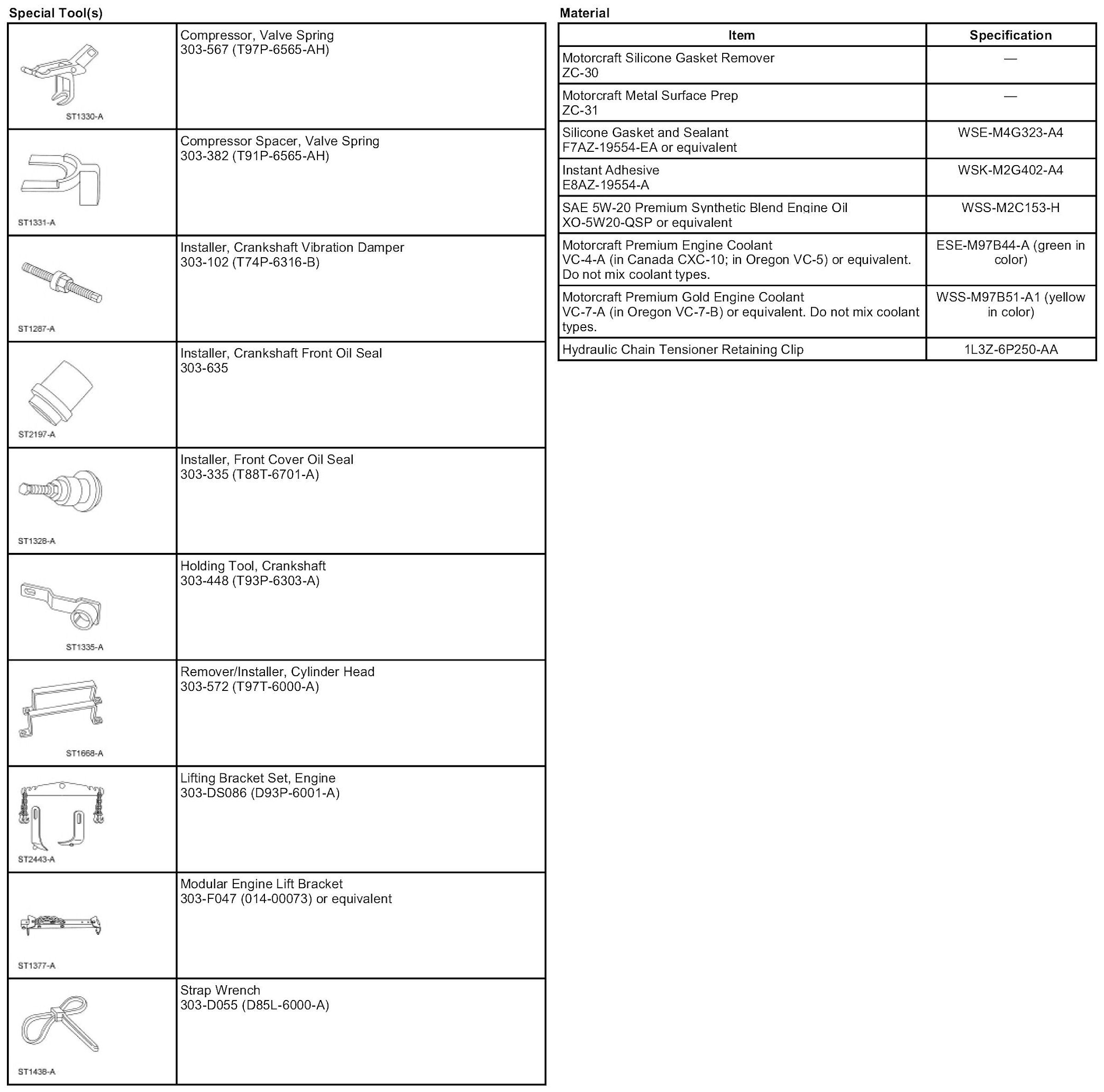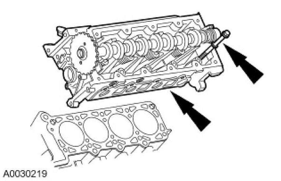 2. CAUTION: Cylinder head machining or milling is not authorized by the Ford Motor Company. Cylinder head flatness must be within 0.0254 mm (0.001 in) across a 38.1 mm (1.5 in) square area.
