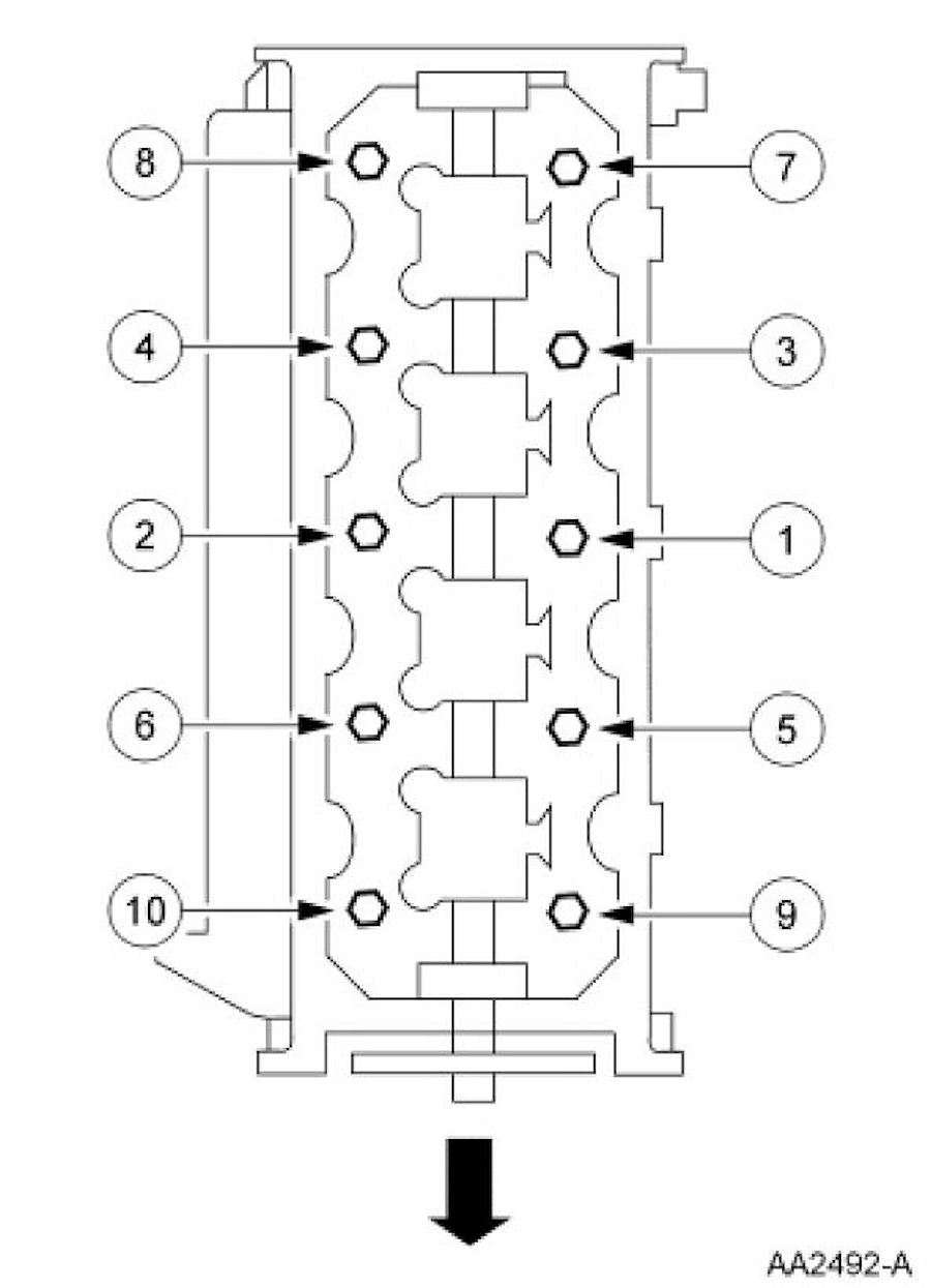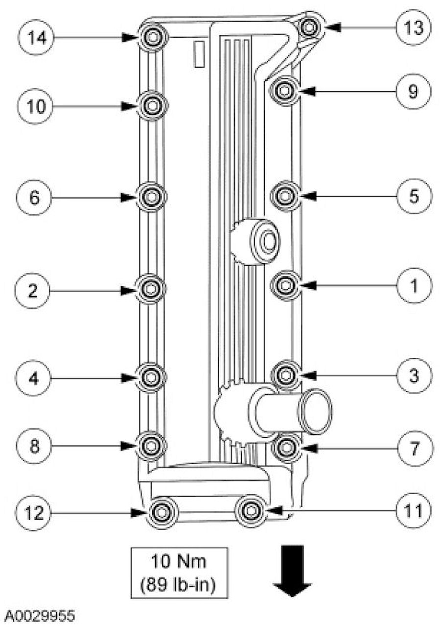 Stage 3: Tighten fasteners 8 through 15 to 48 Nm (35 lb-ft).