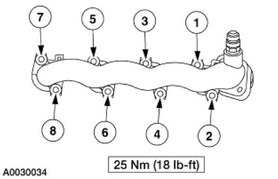 Stage 1: Tighten fasteners 1 through 5 to 25 Nm (18 lb- ft).