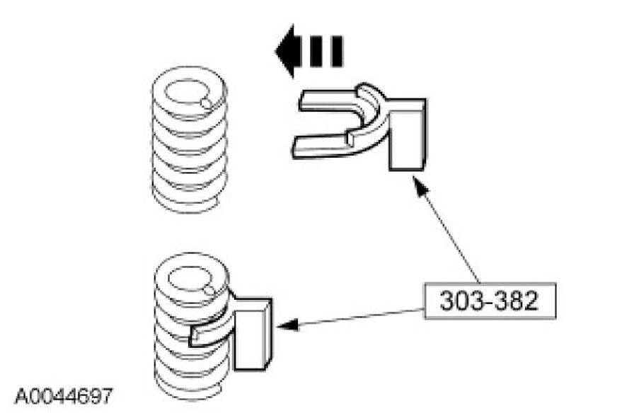 30. Install the special tool between the valve spring coils to prevent valve stem seal damage.
