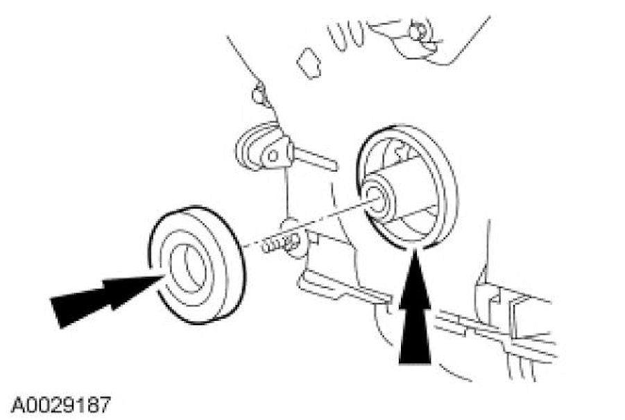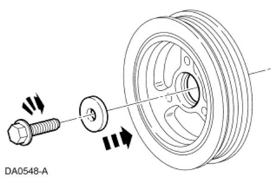 44. NOTE: Use a suitable strap wrench (303-DO55) to hold the pulley while tightening the bolt.