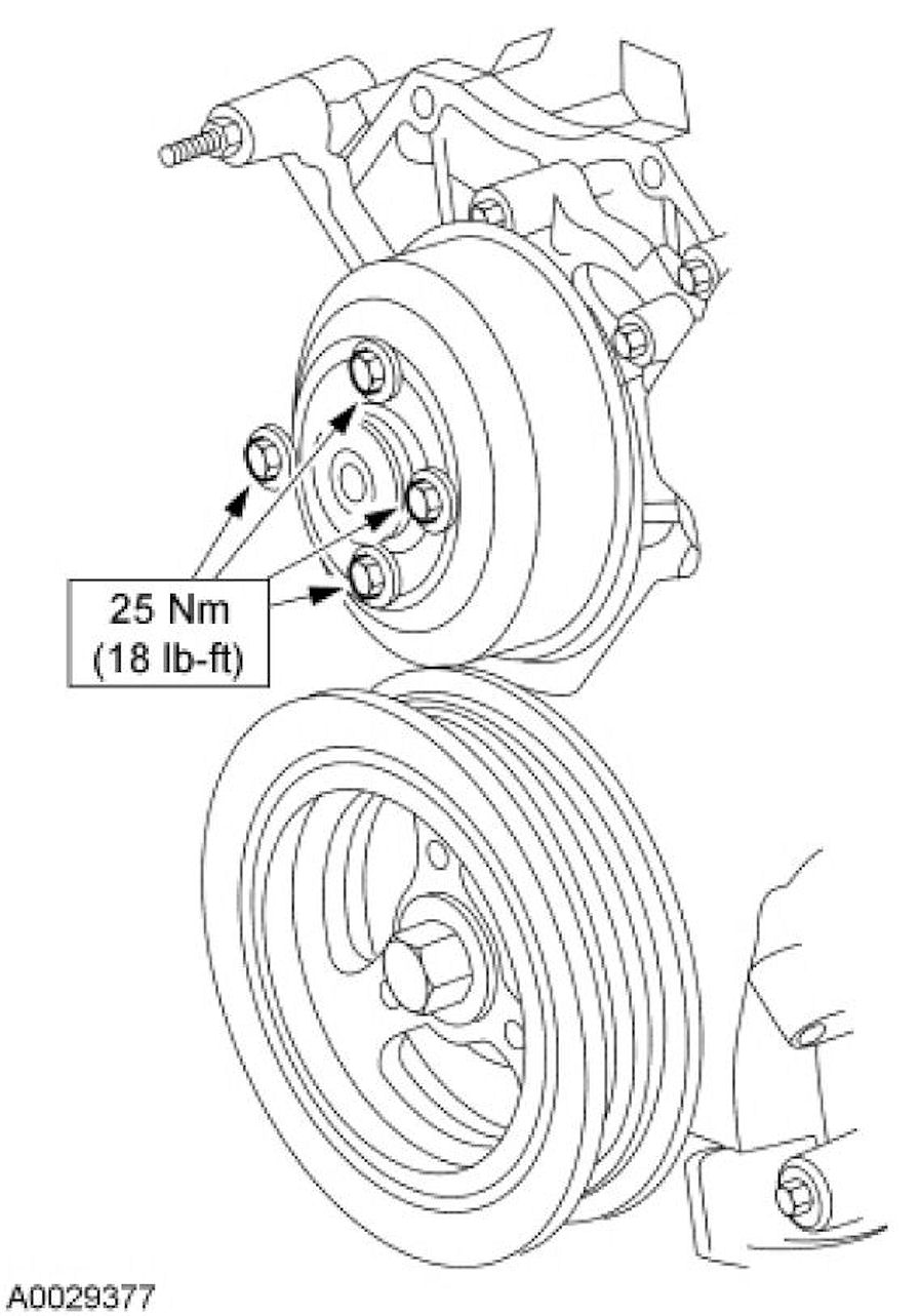 45. Position the coolant pump pulley on the coolant pump and install the bolts.
