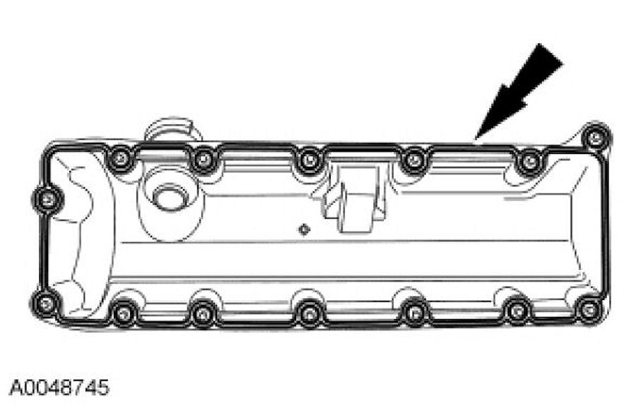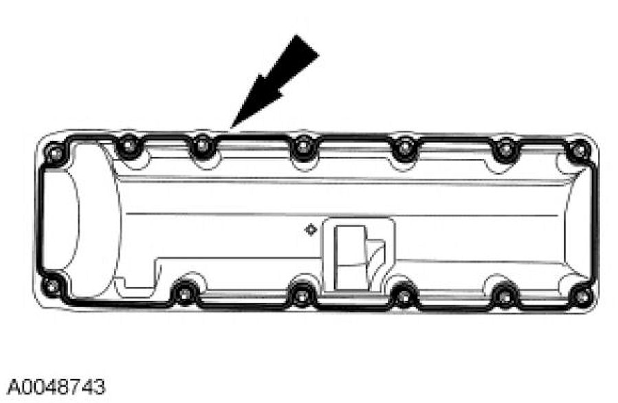 46. If a new gasket is being installed, apply instant adhesive completely around the gasket groove in the LH valve cover. Install the new valve cover gasket.