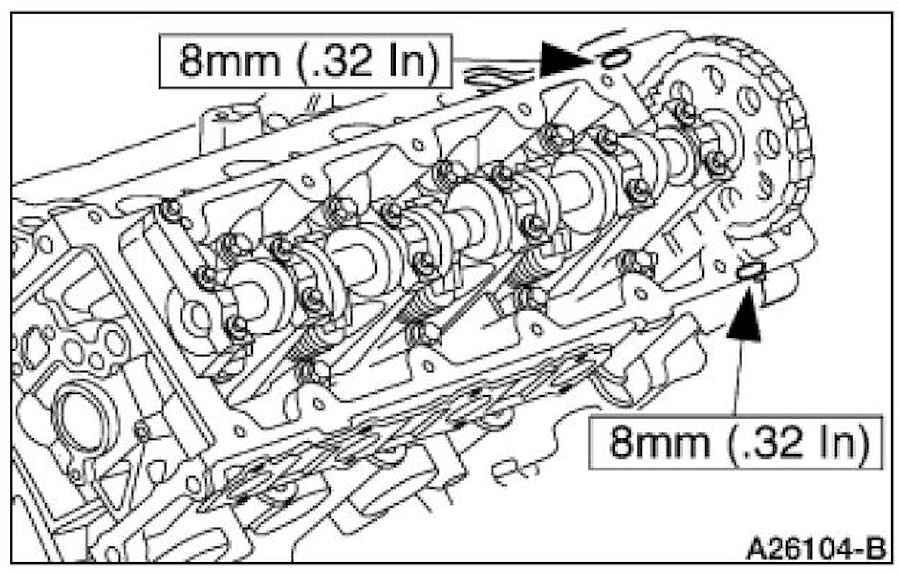 2. Rotate the RH camshaft until the timing mark is approximately at 11 o'clock.