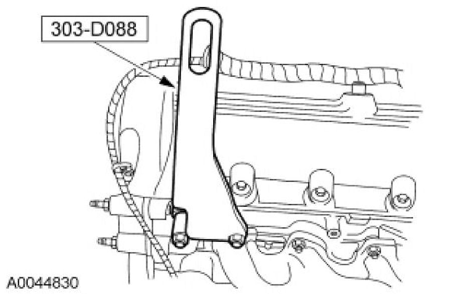 NOTE: The number one piston is at top dead center (TDC) when the stud on the engine block fits into the slot in the handle of the special tool.