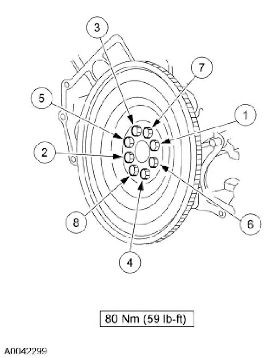 74. Install the flexplate or the flywheel and bolts. Tighten the bolts in the sequence shown.