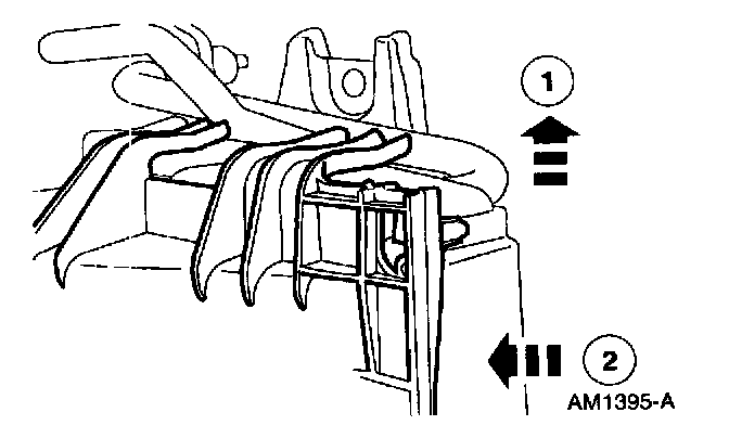 CAUTION: The heater core cover must be raised vertically before removal to avoid damage to the heater core housing.