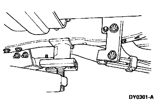 ^ When raising a vehicle on a twin-post hoist, use care when positioning the vehicle so that the hoisting forks do not interfere with the shock absorber mounting brackets or stabilizer mounting brackets, if so equipped, or damage the axle carrier or rear cover.