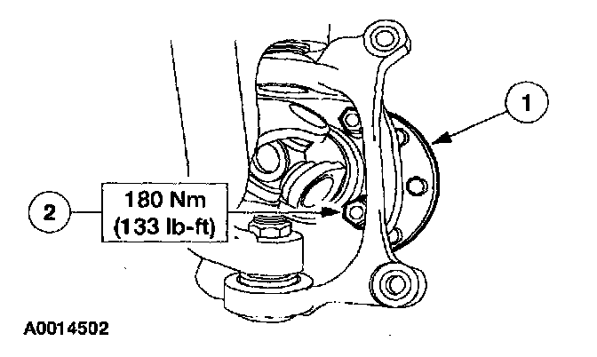 5. Note: Apply a coat of Ford High Temperature 4x4 Front Axle and Wheel Bearing Grease E8TZ-19590-A meeting Ford specification ESA-M1C198-A to the O-ring area of the wheel hub and bearing before installing the hub and bearing.