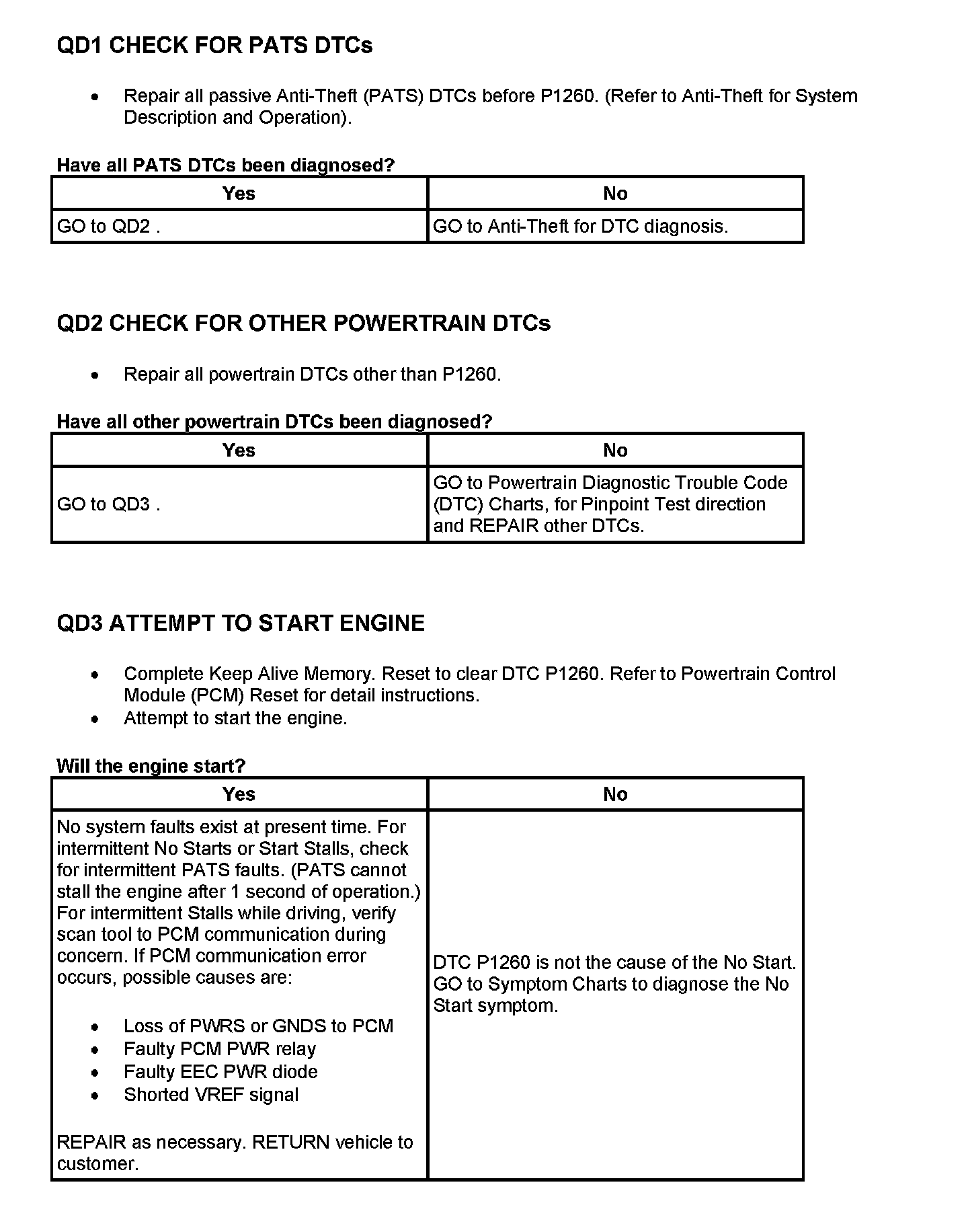 Tests QD: Diagnostic Trouble Code (DTC) P1260