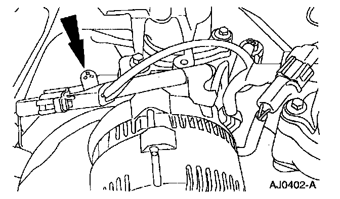 5. Disconnect the generator wire harness retainer from the generator bracket stud.