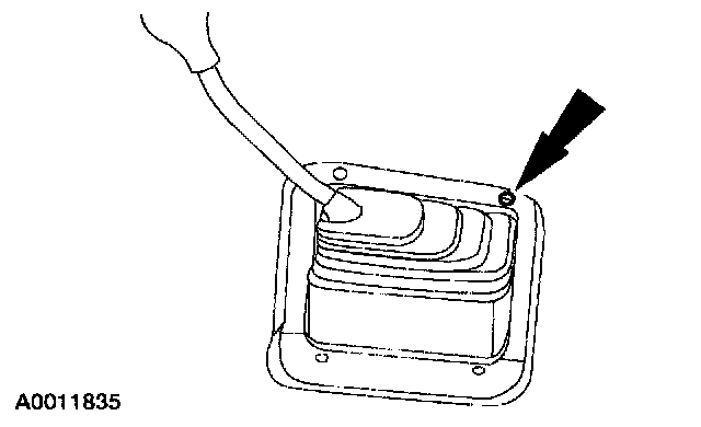 2. For vehicles with a gasoline engine and automatic transmission, install the bolt in the rearward (RH) threaded hole in the transmission case.