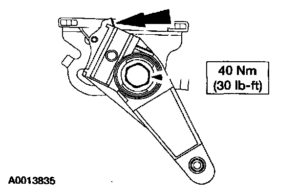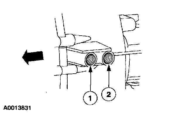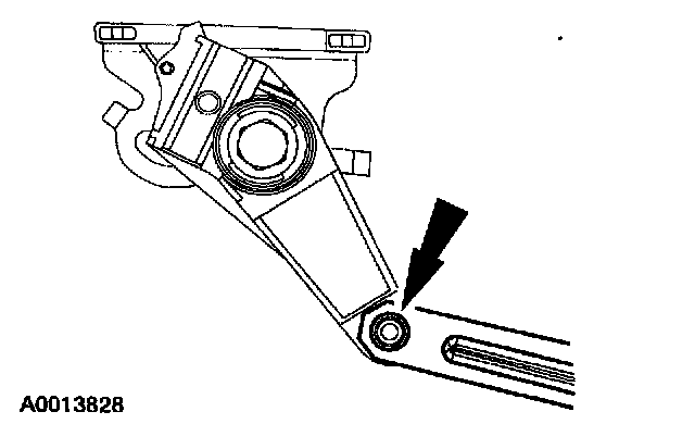 1. For vehicles with a gasoline engine and manual transmission, or a diesel engine and manual or automatic transmission, install the bolt in the forward (LH) threaded hole in the transmission case.