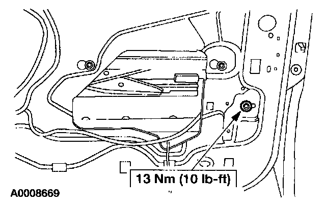 NOTE: Make sure the door glass is seated in the glass run channel and the rear glass run bolt is positioned all the way forward prior to tightening the rear glass run bolt.
