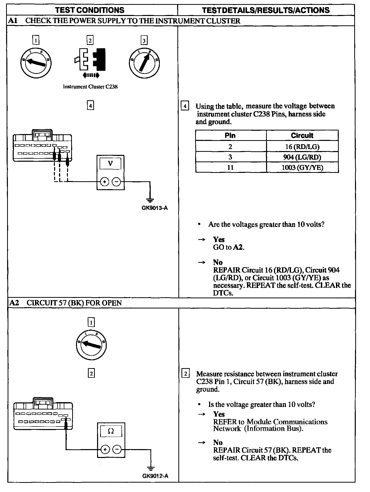 Test A: No Communication With Instrument Cluster Module