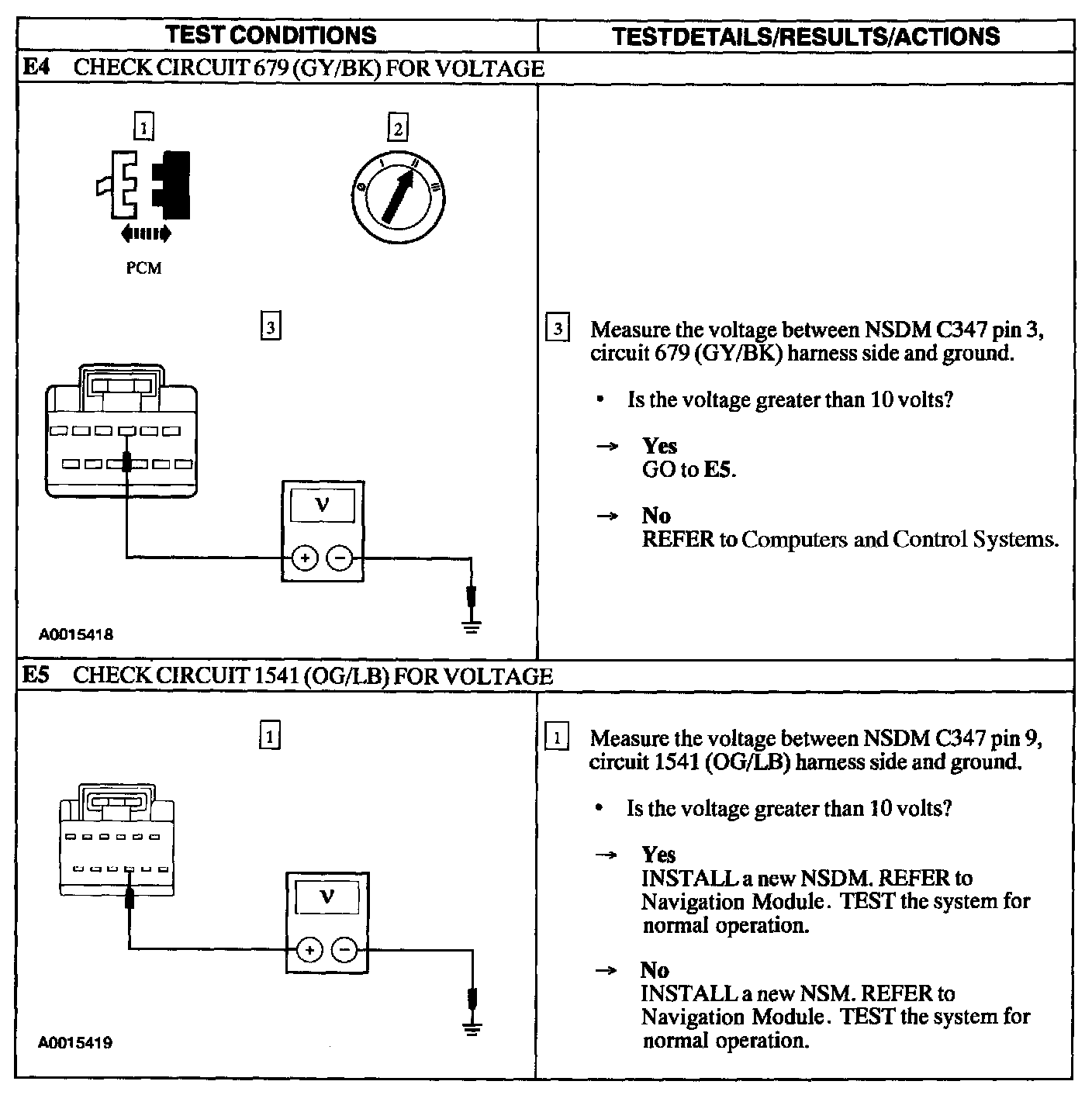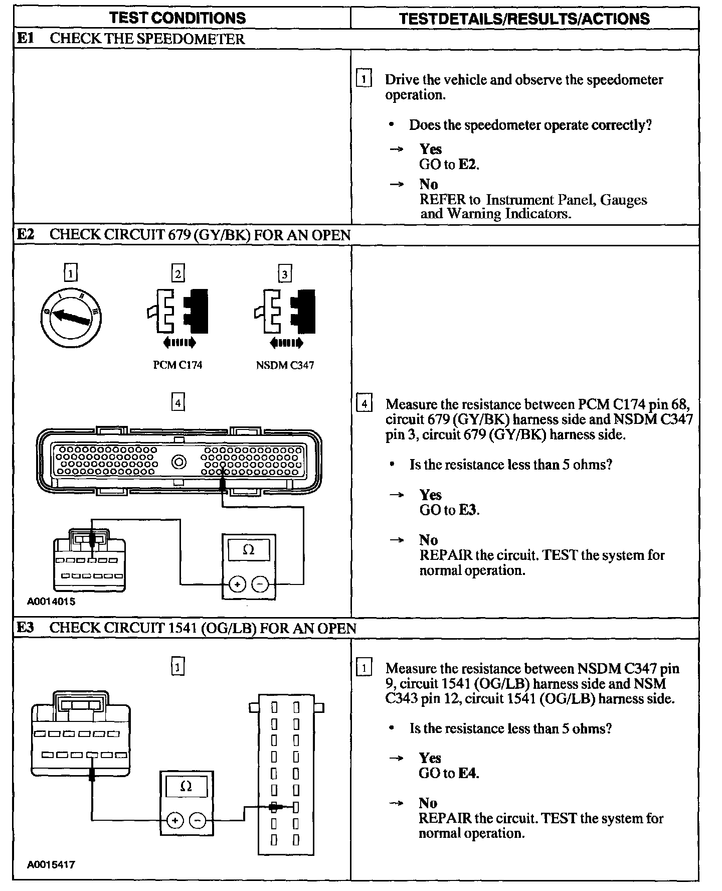 E: Navigation System Does Not Operate Correctly - No Speedometer Signal / E1 - E3: