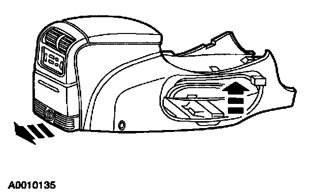 ^ Lift the front of the floor console and slide rearward to disengage the floor brackets.