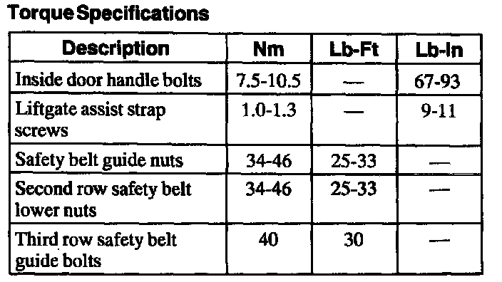 Torque Specifications: