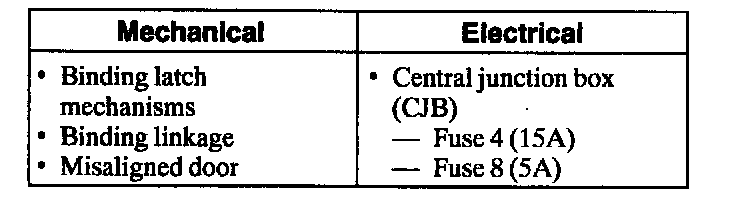 1. Verify the customer's concern by operating the keyless entry/computer operated locks.2. Visually inspect for obvious signs of mechanical and electrical damage.