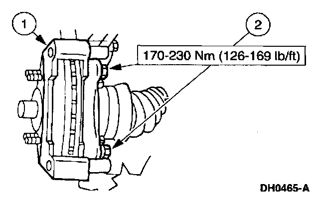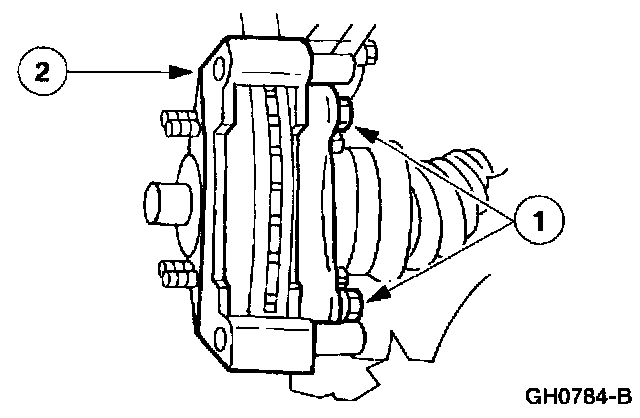 1. Remove the two front disc brake caliper anchor plate bolts.