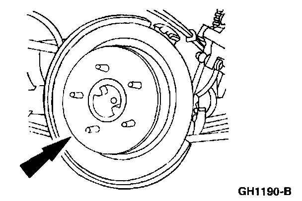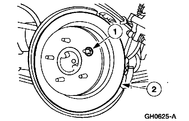 2. Note: If the brake disc binds on the parking brake shoe and lining, remove the adjustment hole access plug and contract the parking brake shoe and lining.