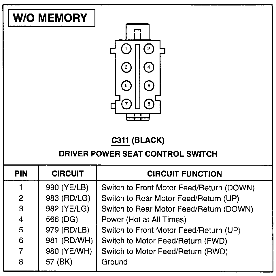 Power Seat Control Switch