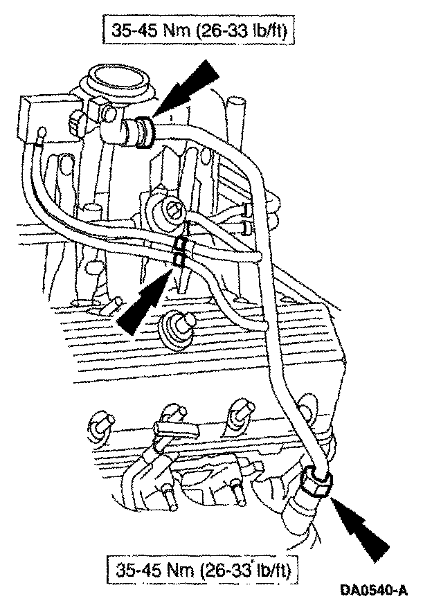 On 4.6L engines, tighten both fittings starting the top in two stages.