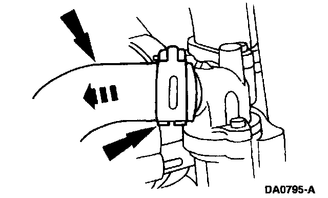 5. Compress and slide the hose clamp and disconnect the upper radiator hose.