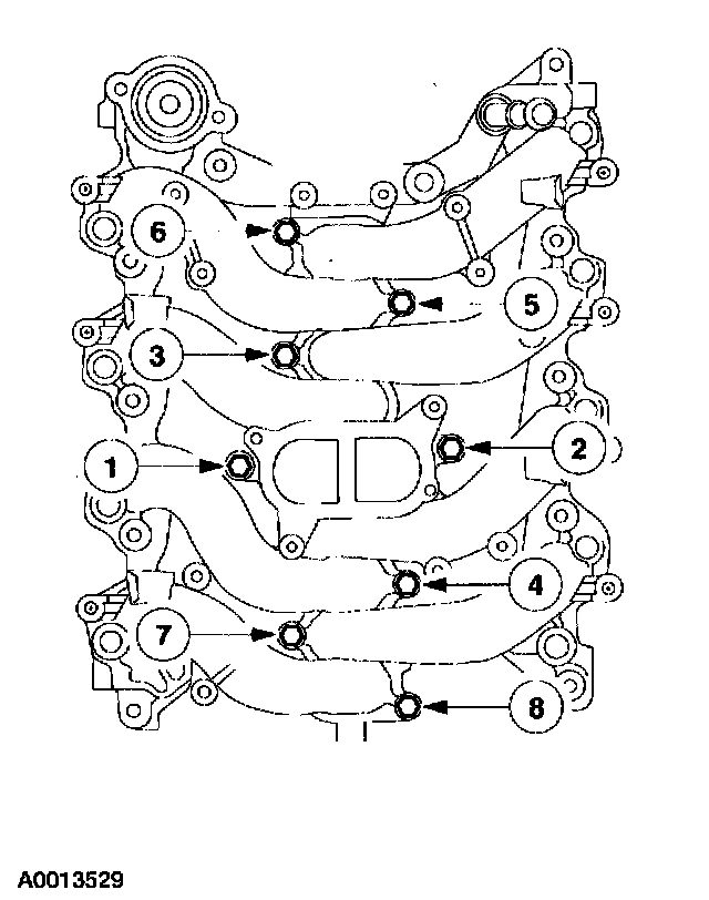 4. Install the bolts and tighten in two stages in the sequence shown.