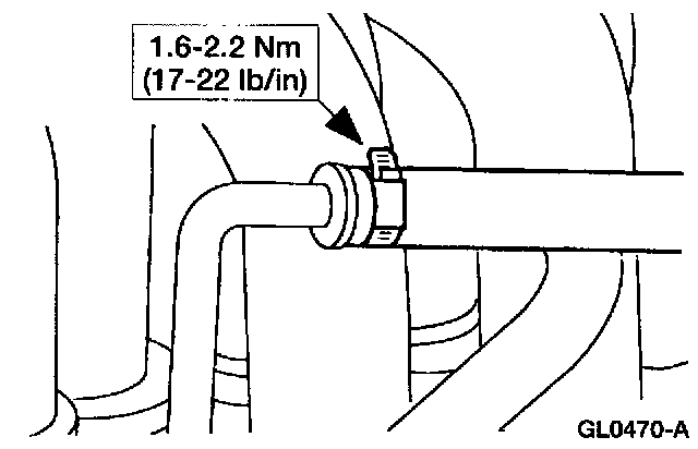 1 Loosen the hose clamp.